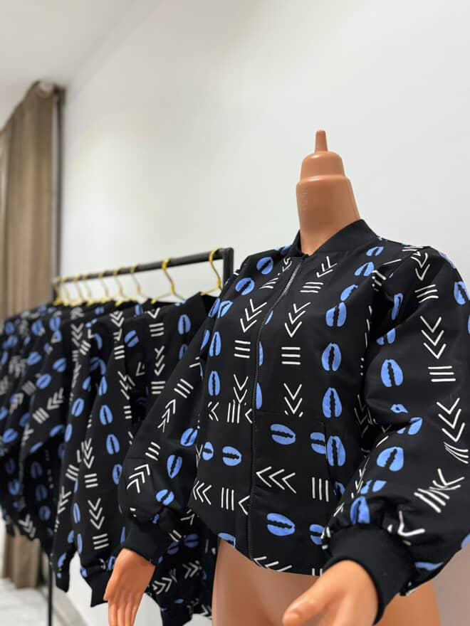 Whether you're dressing up or keeping it casual, this bomber jacket adds a striking Afro-modern touch to your outfit.